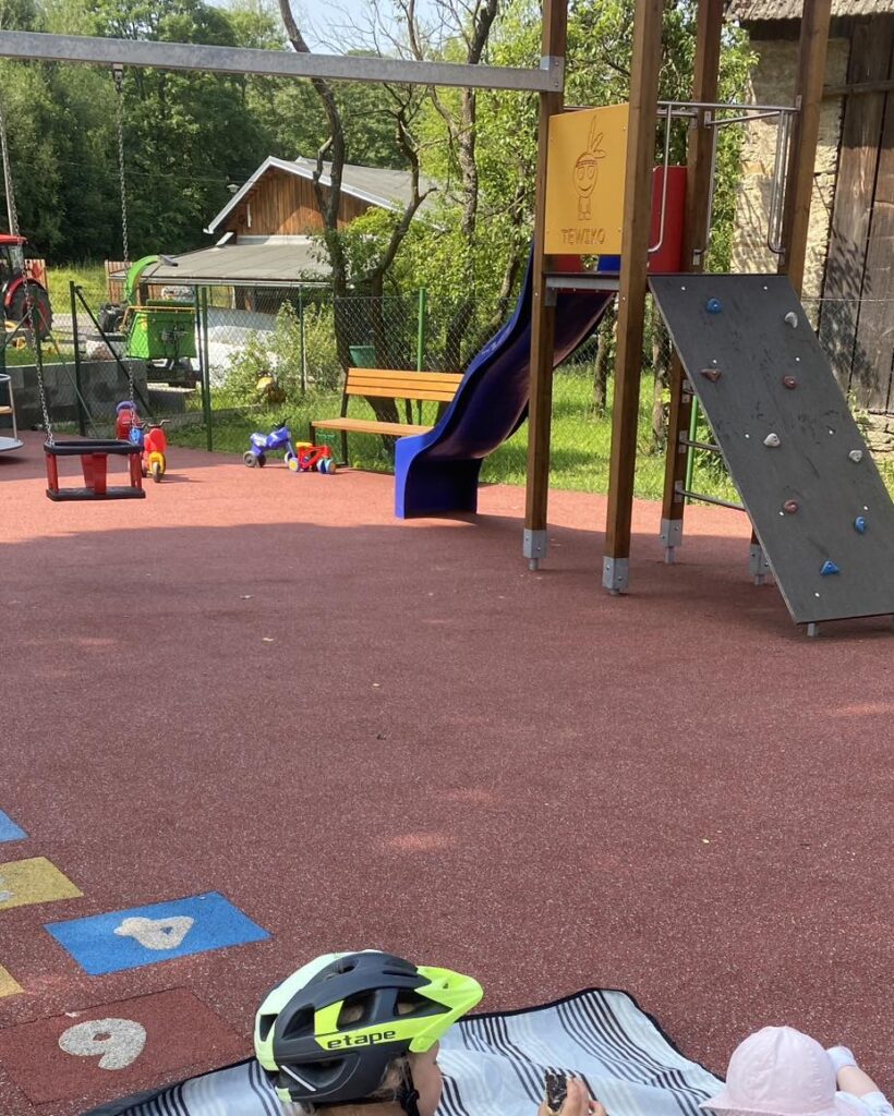 V Janové je fajn oplocené hřiště s tartanem hned vedle úřadu a hospody i obchodu. Tam jsme si udělali 1.zastávku. Místní hasiči tam dokonce prodávají i zmrzlinu!