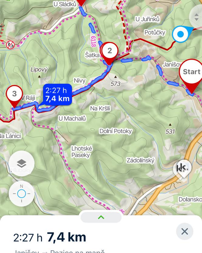 🚶♀️➡️ zpět na Nivy a odtud strmě dolů do Semetína na zastávku MHD